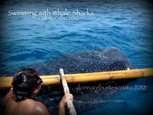 There were 5 of them in the area. I was allowed to swim but not go near them not was I allowed to touch them. I dove underwater. I almost swallowed water in disbelief how close one was to where I was swimming. I could have touched him (it was a male). I sort of froze in awe! He was approximately the length of maybe 4 of me (6meters long) with a wide mouth of 1.5meters. When he swam away after moments of feeling each other’s presence in the water, I felt his tail touch my leg! Ahhhhhh….. π