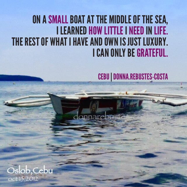 “On a small boat at the middle of the sea, I realized how little I need in life to live. The rest of what I own and have is just…luxury. I can only be grateful.” – Donna